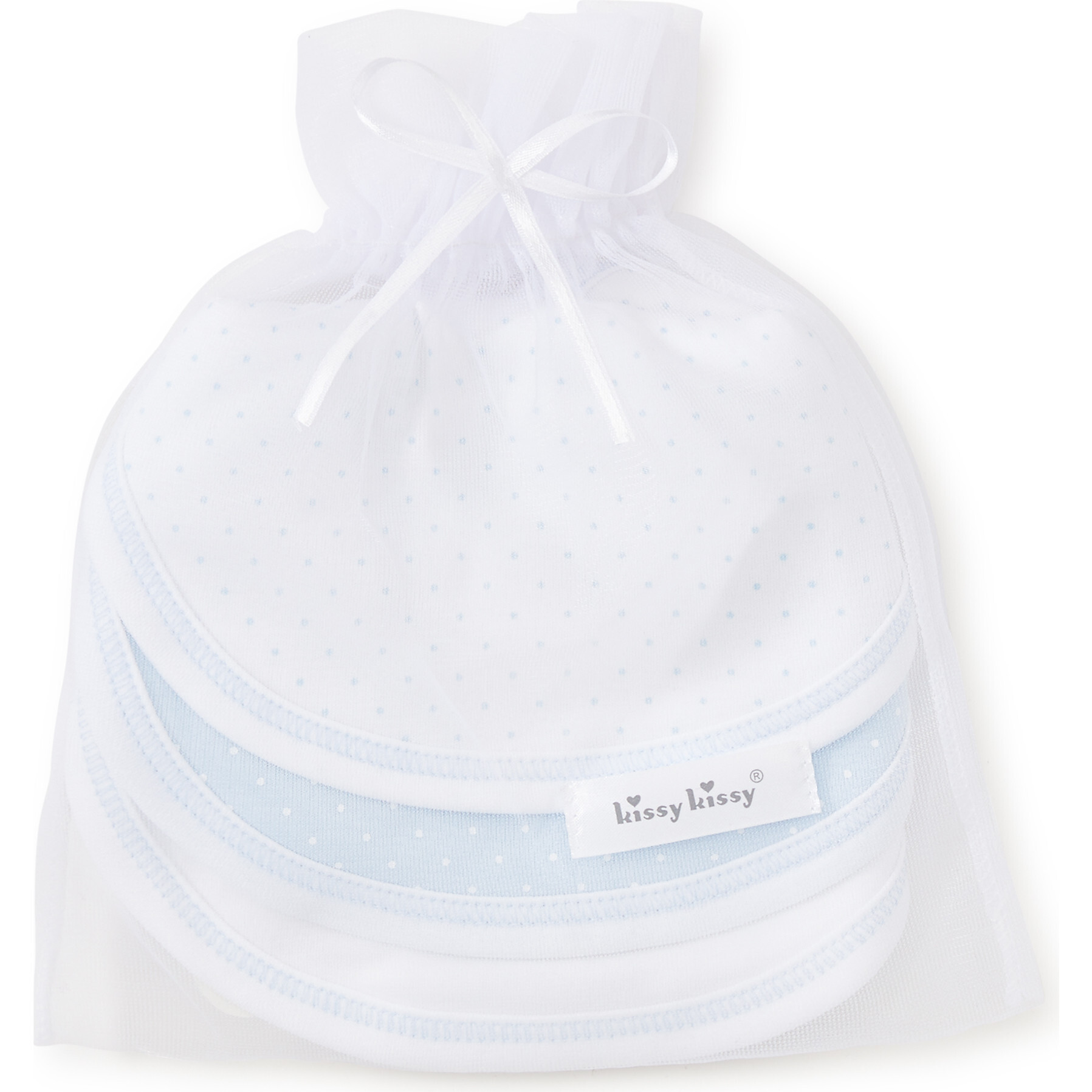 - The perfect gift to give or receive, our set contains three coordinating bibs tucked inside a tulle bag. Made from ultra soft pima cotton and backed with absorbent terrycloth to ensures they stay in place throughout feeding. Absorbent terry cloth backing. Snap-closure bibs.