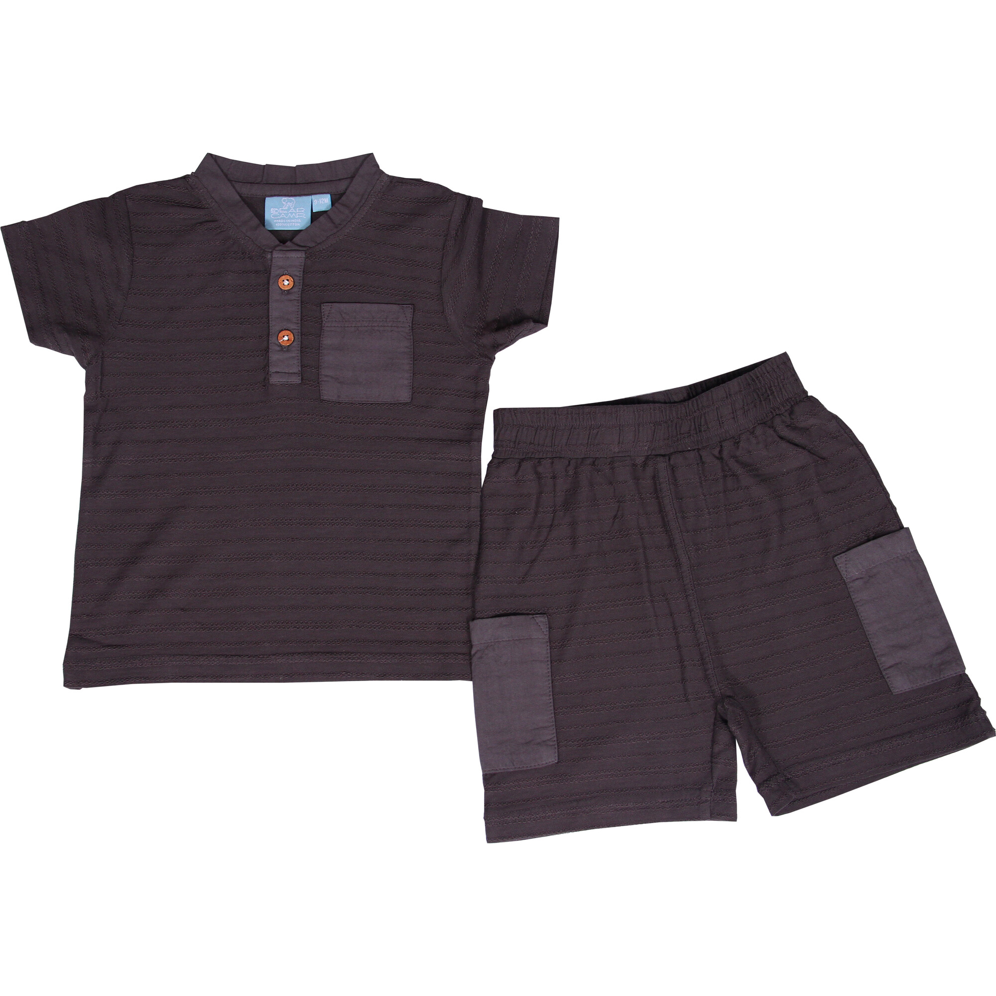 Baby Novelty Stripe Contrast Pocket Henley 2 Piece Set, Charcoal