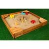 This Backyard Sandbox gives kids a perfect place to build sandcastles, dig for treasure and play with all of their favorite sand toys. With built-in seating, there is plenty of room for kids to play together. The weather-resistant wood and durable finish look great. And when playtime is over, the included mesh cover fits over the top to protect the sand.