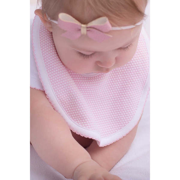 Cute! Your little one will look stunning with the Pink Bubble Baby Bib made of soft Bubble fabric and delicate pink picot trim. Details: - Terry Cotton Backed. - Pink Picot Trim Detail. - 100% Peruvian Pima Cotton. - Snapback Closure.