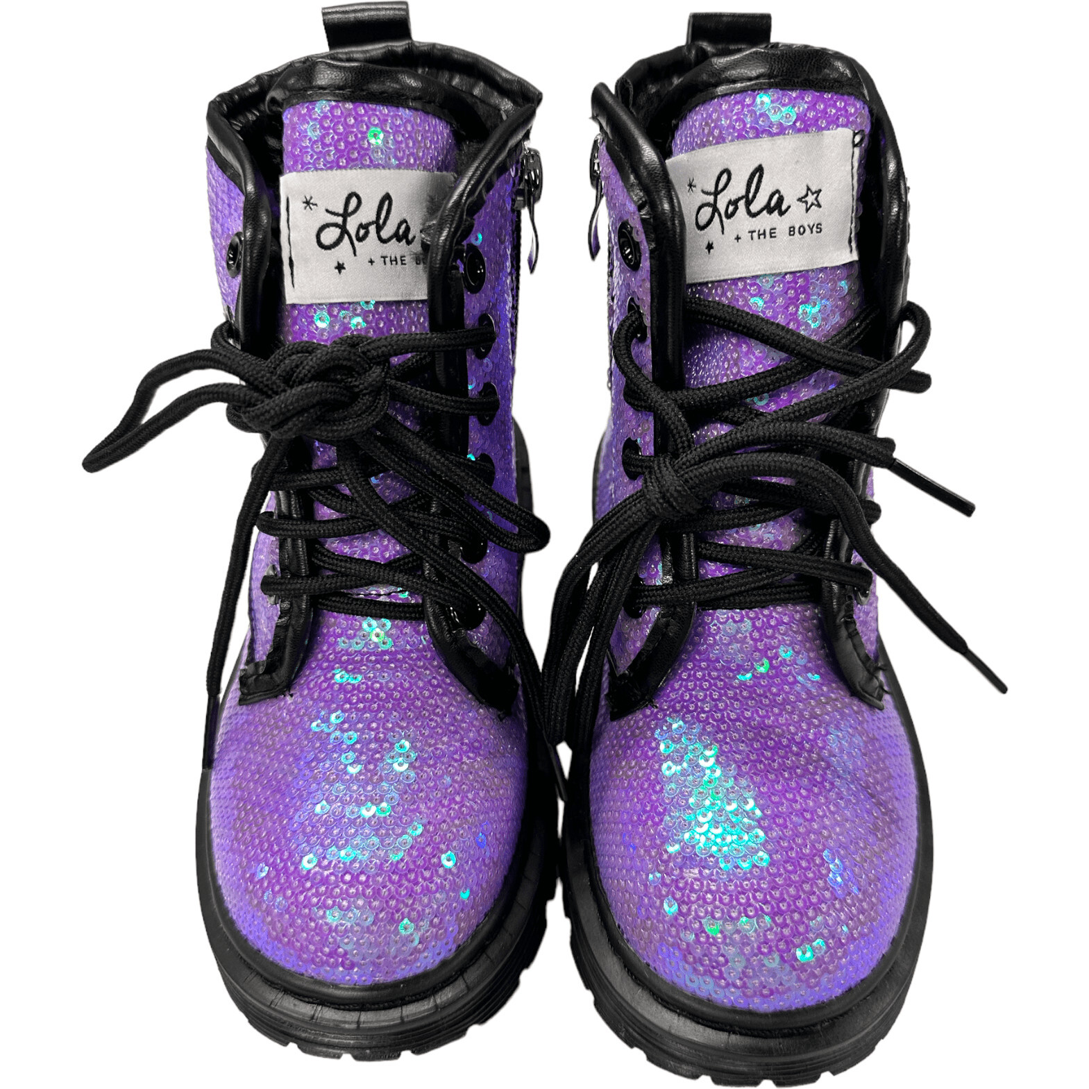 Colorful Sequin Faux Fur Lined Boots, Lavender