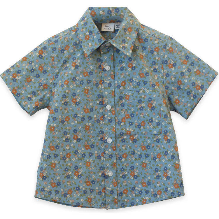 Cotton Collar Short Sleeve Floral Shirt, Cottage