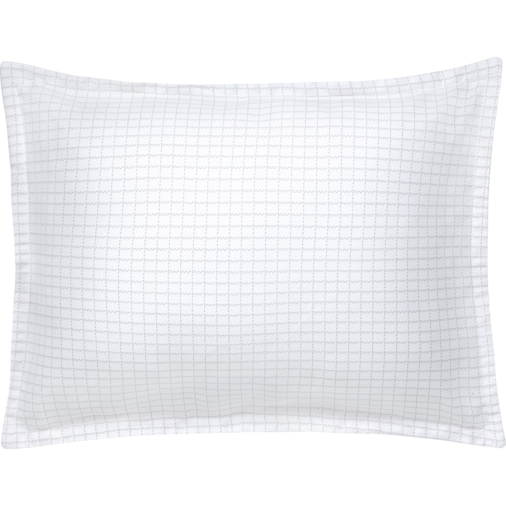 A classic double grid on a soft cotton sateen, this neutral crib set will match any nursery. Boudoir Sham Measures: 12” x 16”. 100% Cotton Sateen.