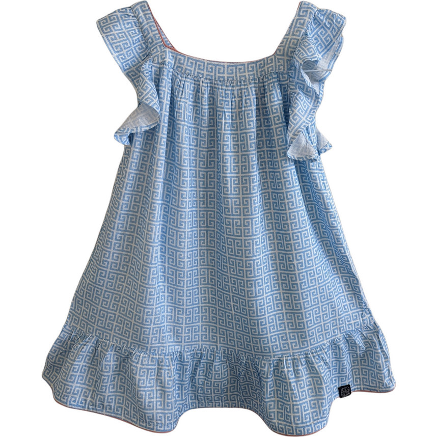 Flutter Sleeve Dress, Greek Key in Ocean