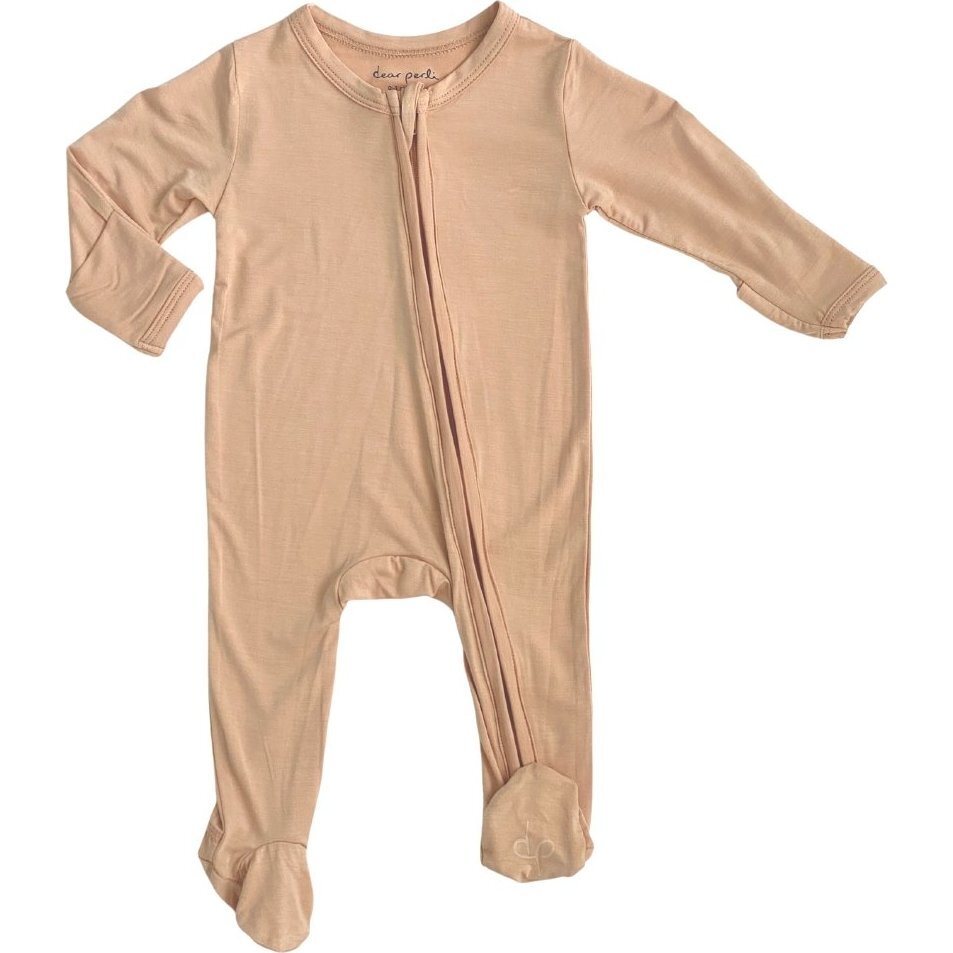 Silky soft bamboo is gently designed for sensitive or eczema-prone skin. 2-Way Reversible Zipper to make diaper changing so much easier! No more snaps, no need to expose your little one’s chest or belly to the cold. Fold-over mittens on sizes up to size 3-6 months to protect your baby from scratching themselves Non-slip grips on footies for walkers in sizes 6-12 months Tagless no interior tags for sensitive skin The Seasonless fabric keeps the little ones cool in the summer and warm in the winter Snug fit in accordance with all CPSC safety regulations (The footies are never treated with flame-retardants or chemicals) Oeko-Tex Certified to be completely Free of Chemicals and pesticides Signature Dear Perli Design