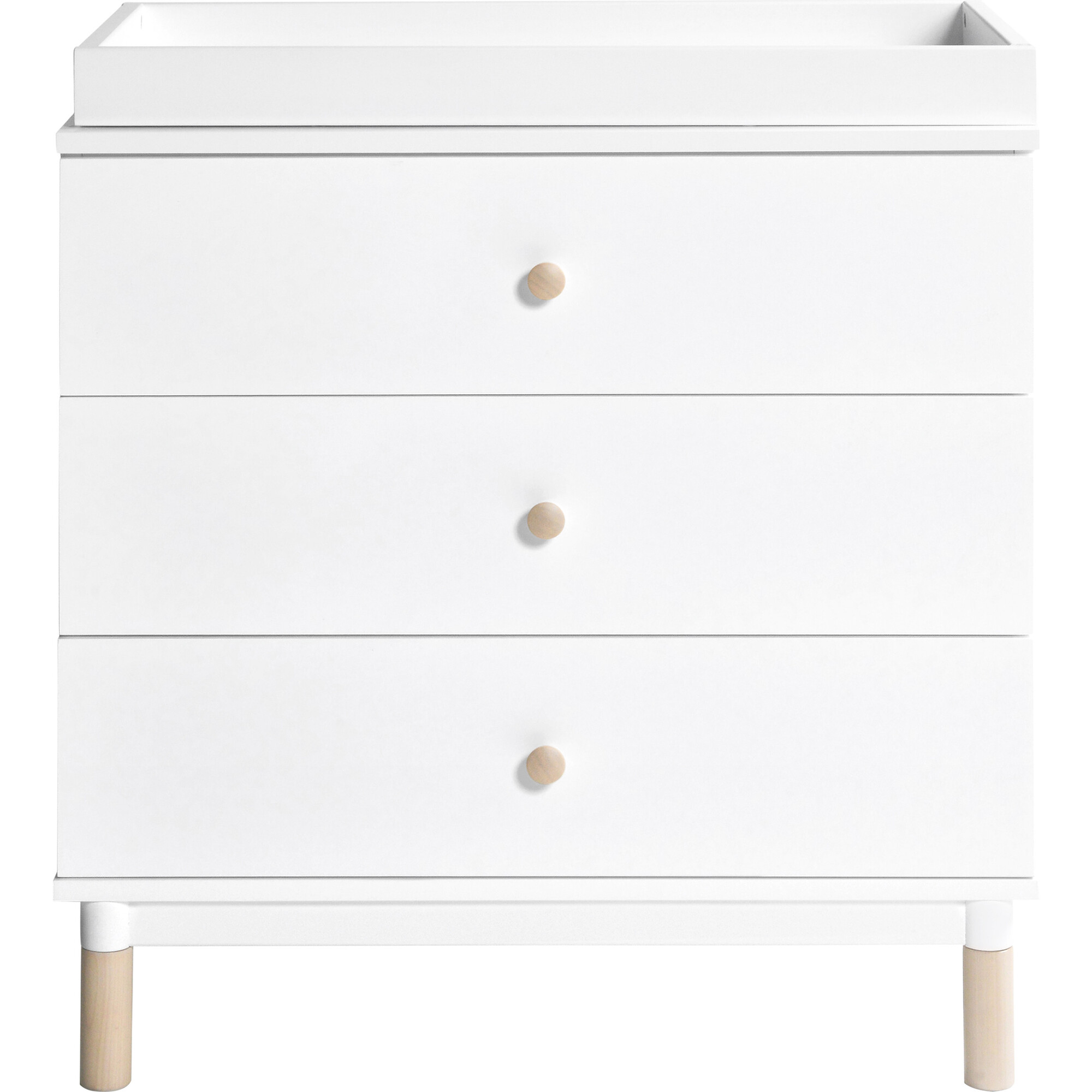 - Outfitted in modern style, this dresser by Babyletto boasts three spacious drawers for baby's clothes and knick-knacks. Made of pine hardwood, it's a lovely addition to any nursery, an ideal way to keep organized, and it comes with a changing tray, too!