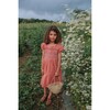 The Reina dress is simply adorable, featuring three delicate rows of smocks that add a charming touch. Thoughtfully selected smock colors bring a subtle sparkle to the design, making it perfect for both countryside strolls and city outings. Crafted from soft, double organic cotton gauze, it offers comfort and elegance. The dress is designed with cute balloon sleeves, a knee-length cut, and a back closure adorned with natural mother-of-pearl buttons for a refined finish.