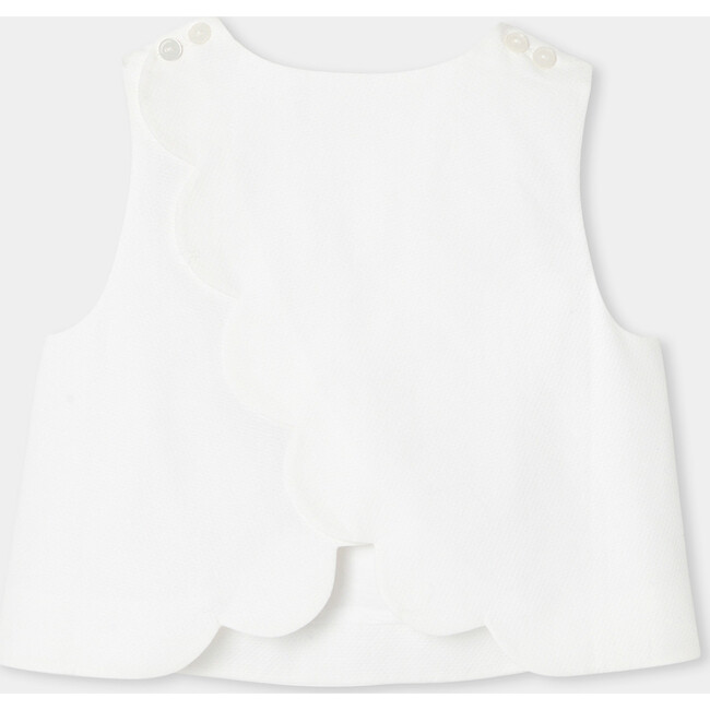 Rediscover French chic and Jacadi elegance in this sleeveless top for girls. Adorned with a scalloped collar, it reveals a delightful scalloped cross-back for an ever more contemporary silhouette. Wear it with a satin skirt on D-day, and you won't be able to resist this original model in honeycomb piquÃÂ, which your daughter will be able to wear all summer long with her favorite skirts and shorts.