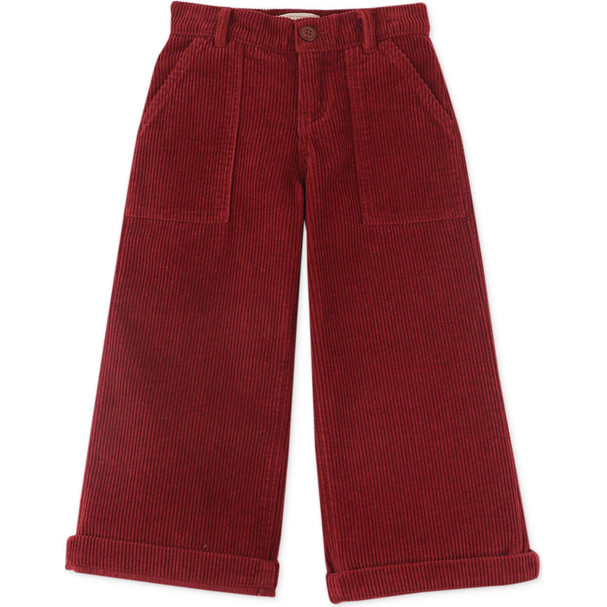 Girls High Rise Wide Leg Patch Pocket Corduroy Pants, Red