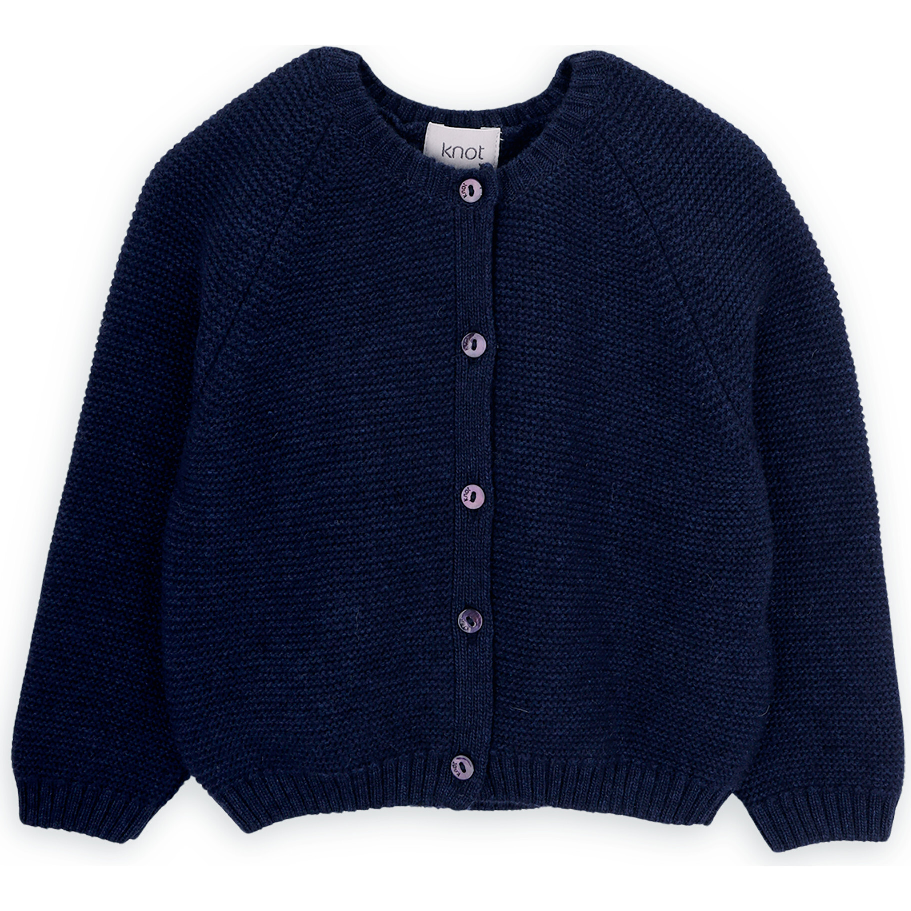 Girls Holly Wool Round Neck Long Sleeve Button-Up Cardigan, Navy