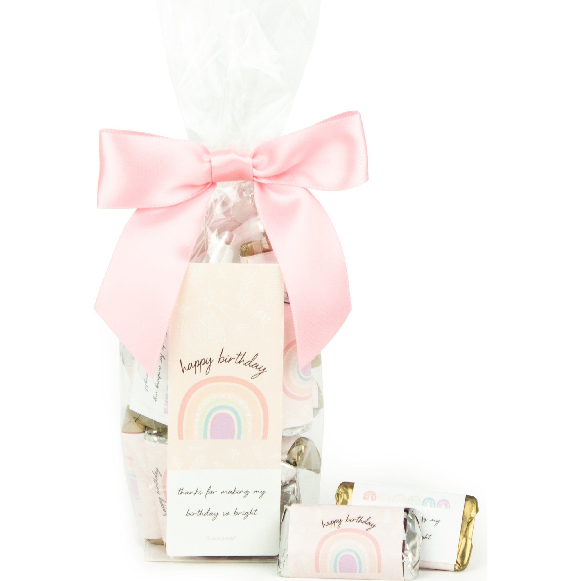 Happy Birthday Rainbow Party Favor Bag & Bow with Wrapped Hershey's Miniatures, Set of 6