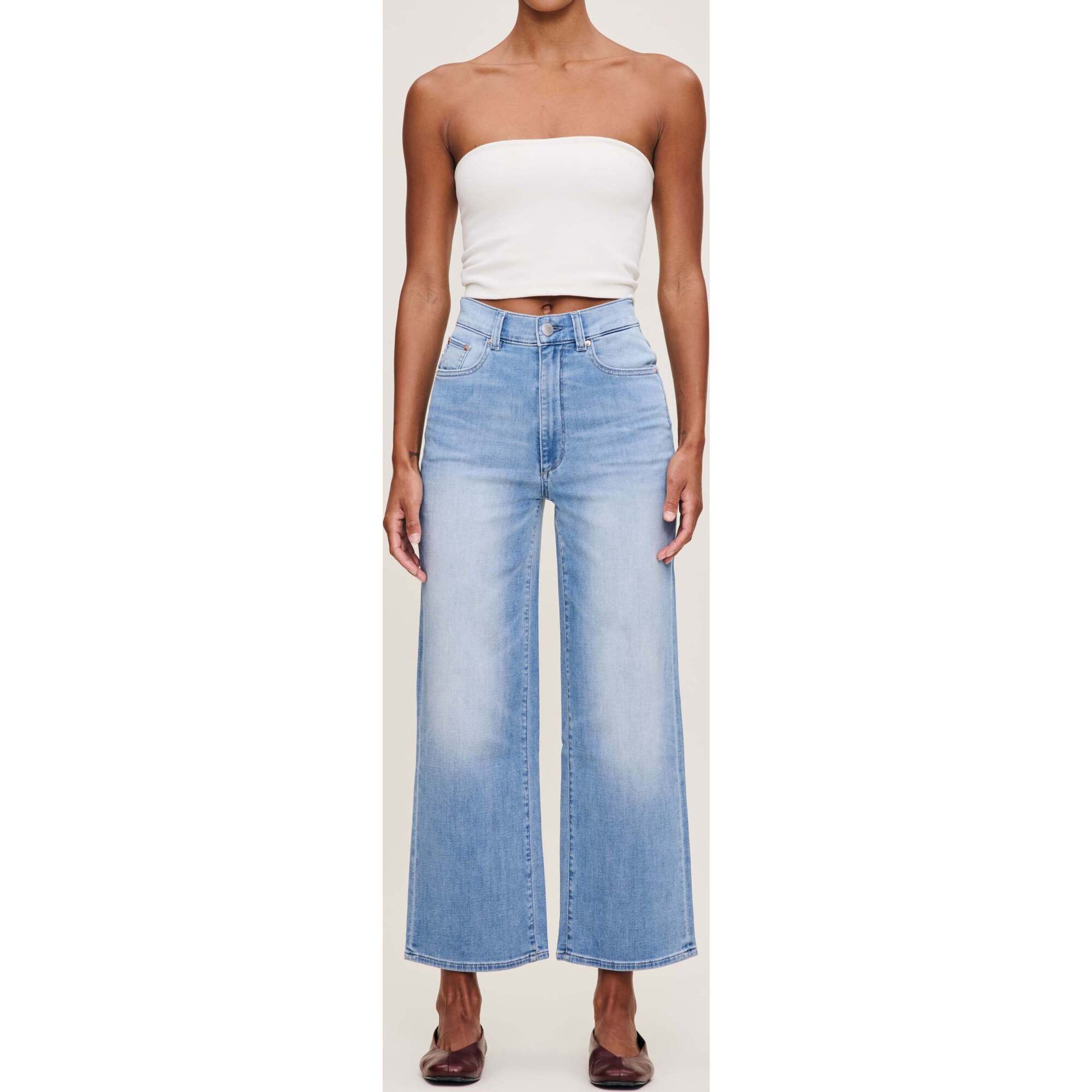 Hepburn is a vintage high-rise that is fitted through the waist and seat, tapering outward from the thigh for a wide leg that hits above the ankle.