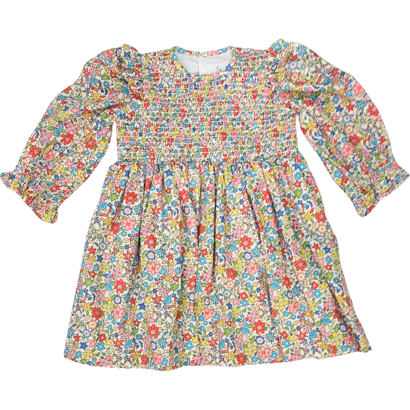Kendall Floral Print Long Poet Sleeve Smocked Dress, Multicolors