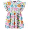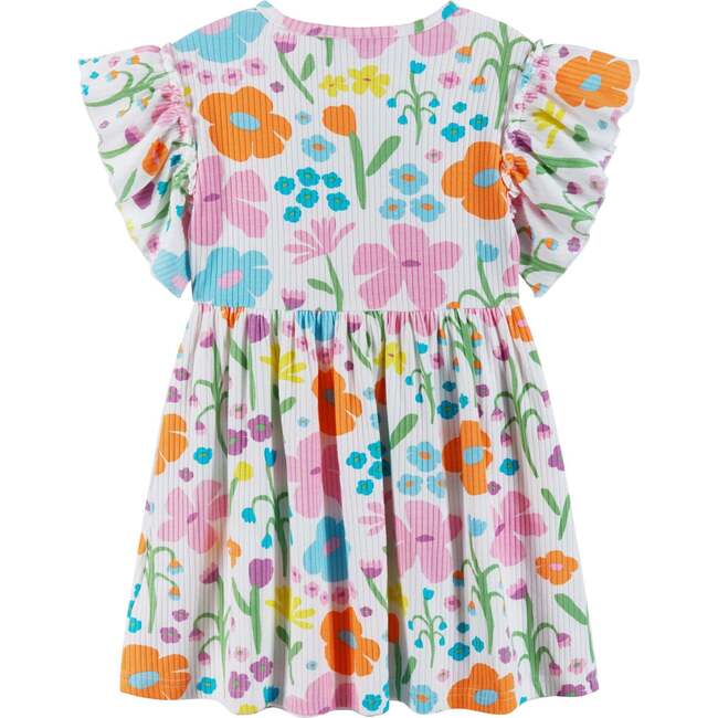 Kids White Rib Knit Dress w/ Ruffle Sleeves, Floral Fun