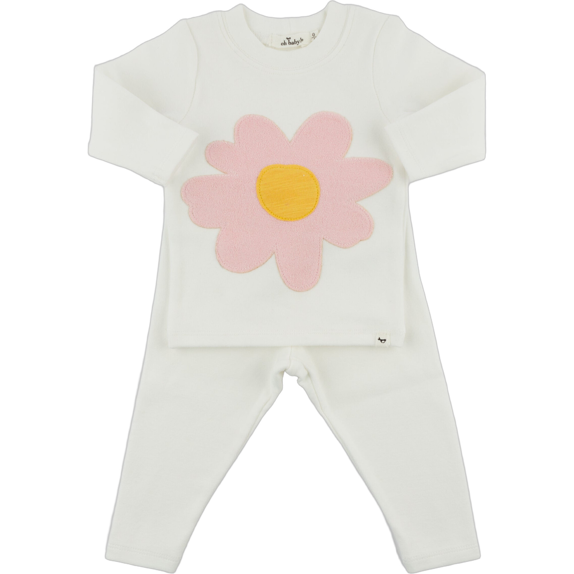 Get ready to bloom with our Daisy Two Piece Set. This adorable baby girl set features a long sleeve top with a bright flower applique, paired with coordinating leggings. Perfect for a stylish and comfortable look. Available in infant sizes. Designed in Minnesota.