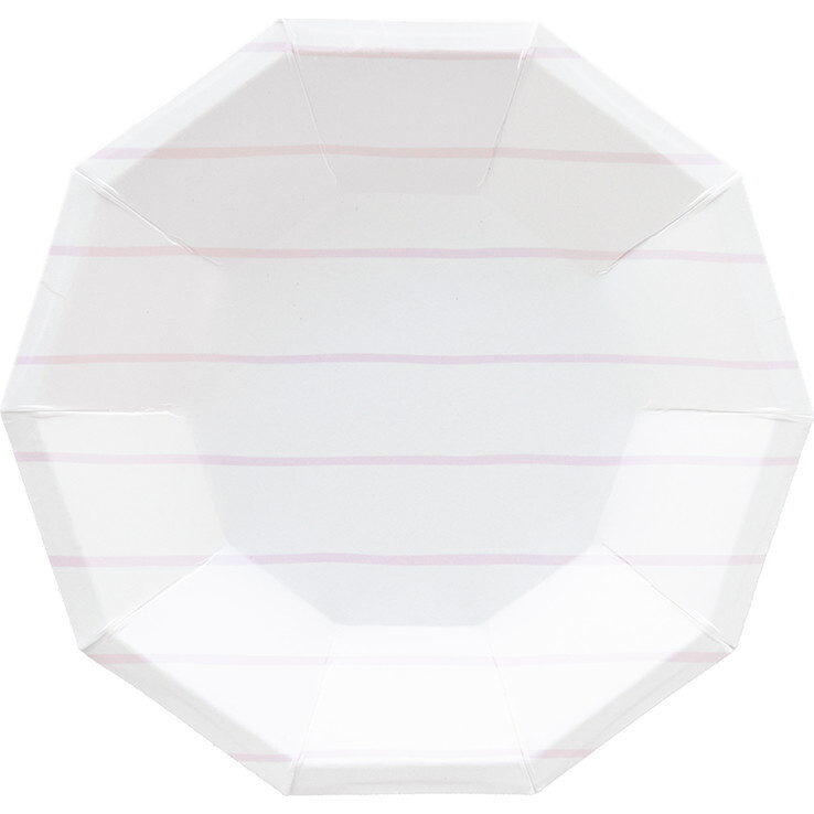 Ooh la la! Inspired by the iconic french breton stripe, these foil-pressed plates are anything but basic. Let them stand alone or mix and match with another pattern to create your own look! Package contains 8 paper plates Each plate measures approximately 7.5 inches from corner to corner Not safe for microwave use