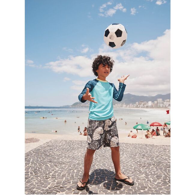 Super stylish and sun safe with UPF 50+ protection, this bold and bright three-toned rash guard fits like a glove and stands up to no end of water-play. Mixes and matches with our variety of swim trunks and bottoms!