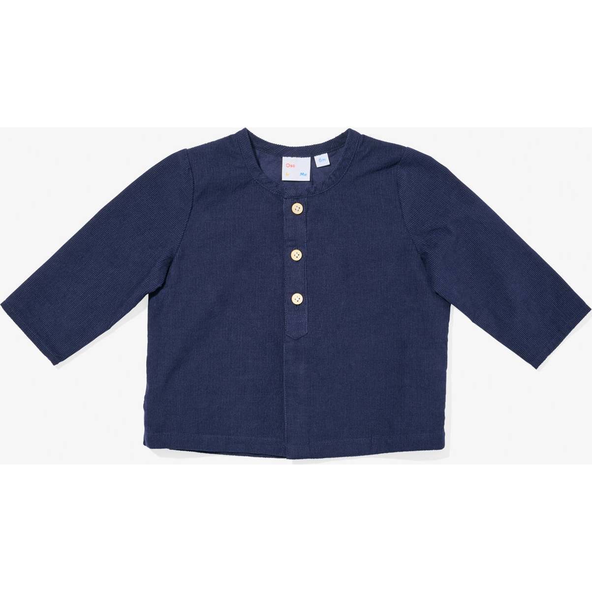 A collarless, casual long sleeve shirt for baby boys or girls with a flat hem and a hidden button that makes the shirt open completely with ease. It’s one of our most versatile pieces wear it is tucked, or untucked, with pants or shorts, or even layered under their favorite dress.