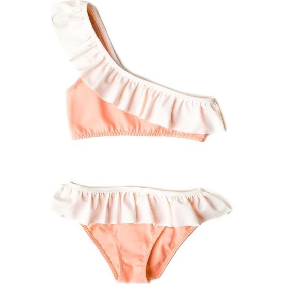 Introducing Folpetto's new girl bikini with romantic and thoughtful details. This chic two-piece has a sweet double ruffle on the shoulder straps and at the hips and is perfect for mix and matching with existing swimwear in Folpetto's collection or paired with a rashguard. Made with soft regenerated fabric, it assures breathability and chemical free UPF50+ protection against sun's harmful rays. Perfect for your little rays of sunshine Excellent sun protection UPF 50 plus. Resistant to chlorine, sunscreens and oils. Quick drying and naturally breathable. Made in Italy with fabric from regenerated fishnets.