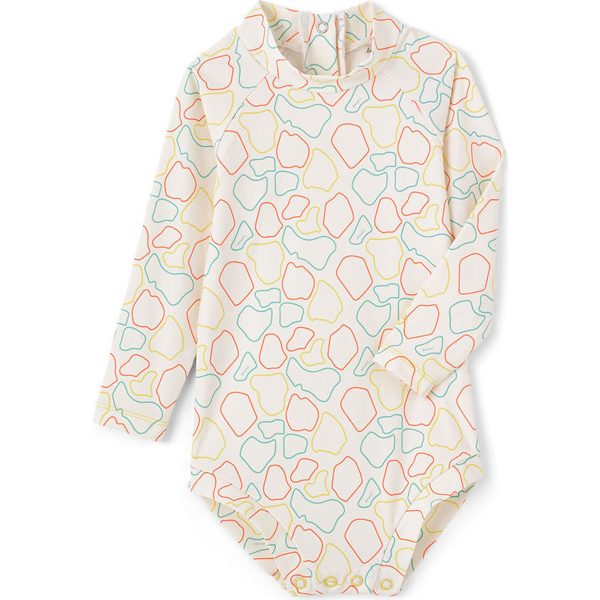 "This summer's must-have! The super stylish long-sleeved jumpsuit with a high collar to protect babies from the sun. We love the embroidery on the on plain color which will bring a “cute touch” to this piece. -The UPF50+ fabric blocks 98% of all UVA and UVB rays- -Flat seams to avoid rubbing against the skin -High collar -Snaps at crotch and back -OEKO-TEX -Recycled fibers ECONYL -Made in Portugal"