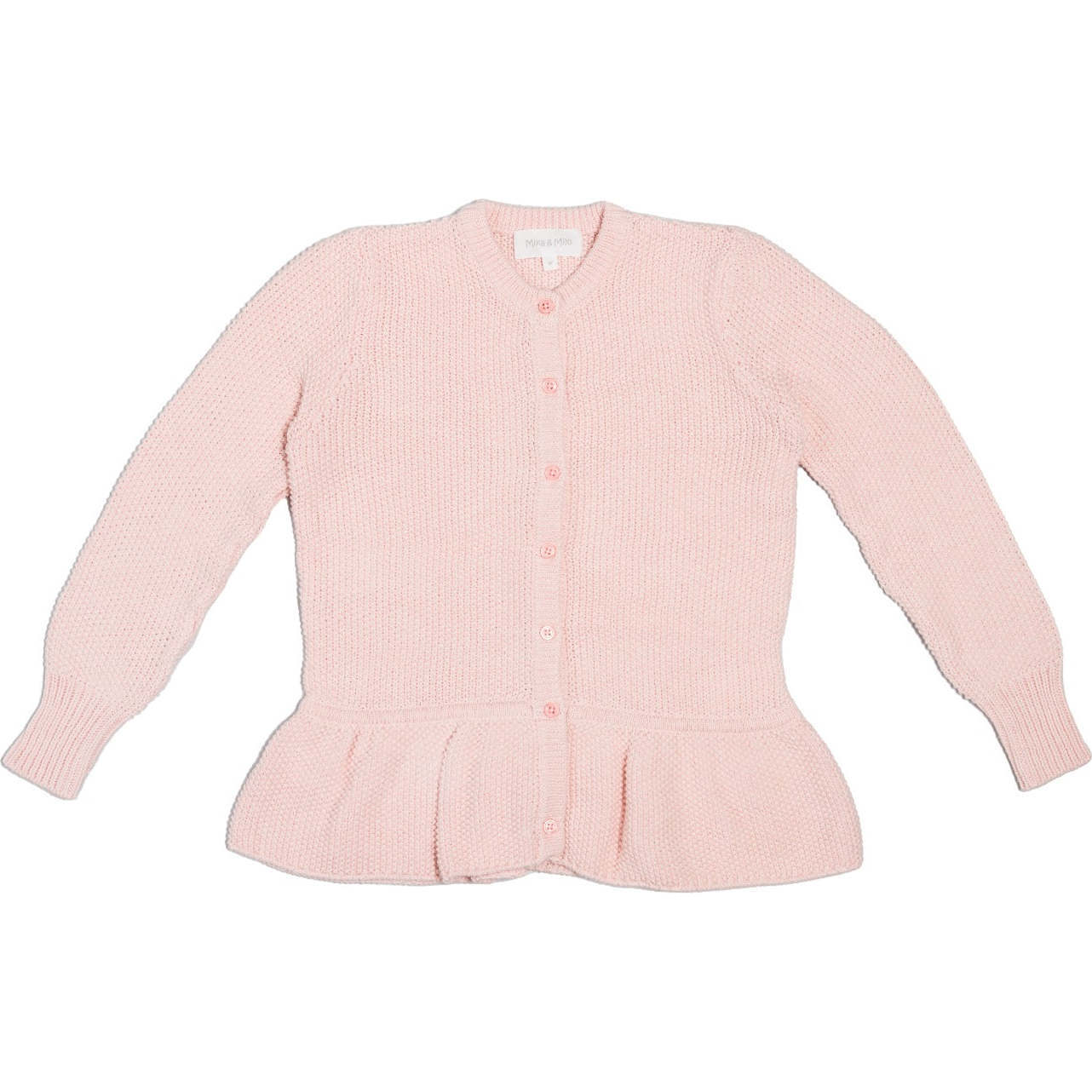 Moss Stitch Ruffle Bottom Long Sleeve Knit Jacket, Blush