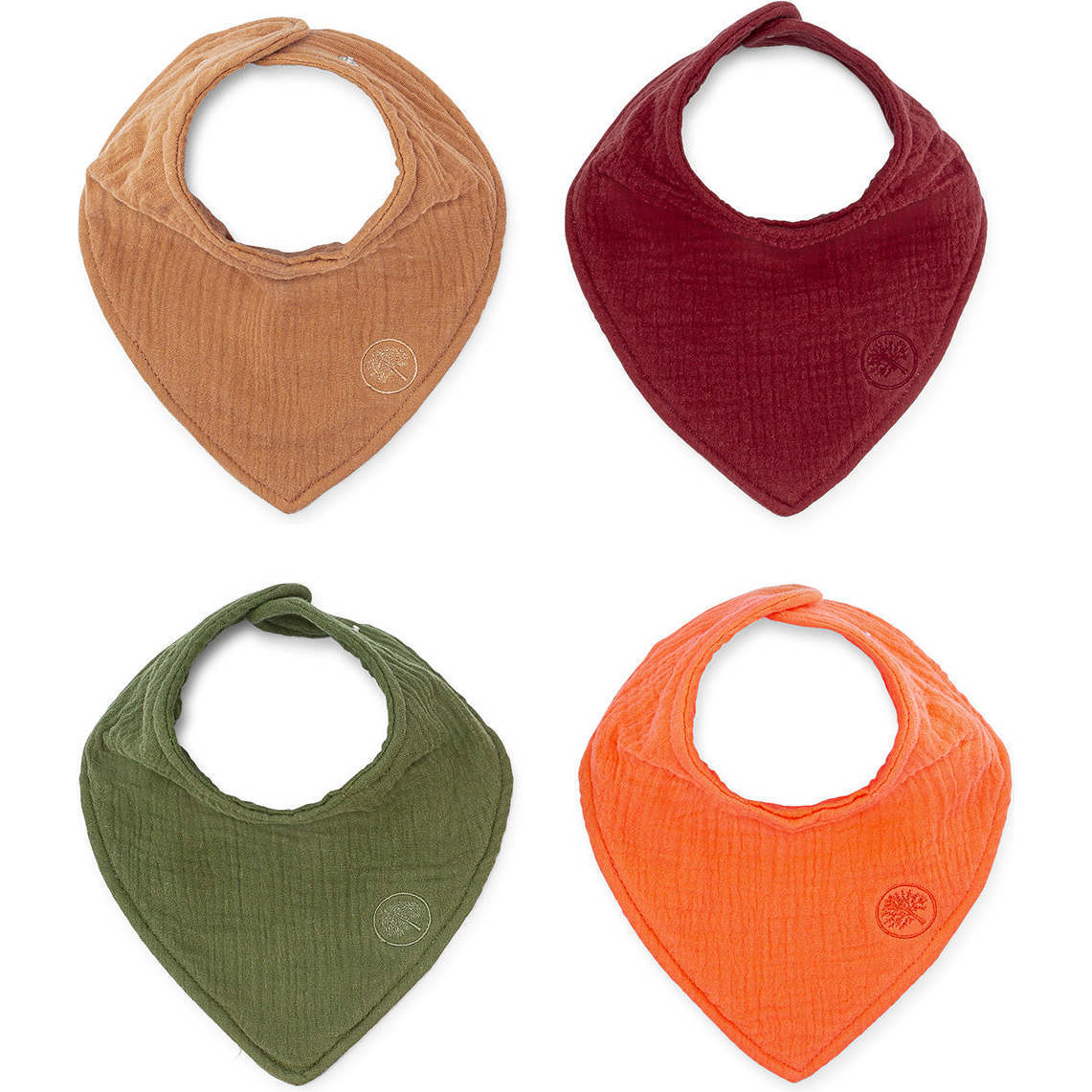 Teething babies drool a lot, and there’s nothing worse than a cute outfit soaked in no time. The Estes Muslin Bibs are here to keep your baby dry and comfortable. These premium bandana-style bibs are made from buttery-soft, absorbent muslin cotton, designed to catch drool, spit-up, and food messes while protecting your baby’s clothes. Features of the Estes Muslin Bib Set: 4 rich, neutral colors to complement any outfit Nickel-free snaps for a comfortable, secure fit Adjustable sizing for 3-36 months The stylish bandana design adds a touch of charm, while the adjustable snaps offer three size settings to grow with your baby. Made from 100% premium muslin cotton, these bibs feature four layers of muslin with a terry inner layer for extra absorbency. The bibs are pre-shrunk to the perfect size, so you won’t have to worry about shrinking in the wash. With four tasteful colors to choose from and a high-quality embroidered logo, these bibs look great with any outfit. Machine washable for easy cleanup, the colors remain vibrant wash after wash. Perfect for daily use at mealtime, snacks, or on the go, the Estes Muslin Bandana Bibs are a baby essential you’ll reach for every day.