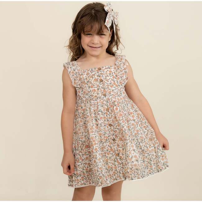 Organic Flutter Buttoned Tiered Dress, Magnolia