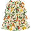 The Passion Fruit skirt in beige is a fresh cotton long skirt with multiple ruffles and an allover passion print. It has an elastic waistband for better comfort and adaptability. 100% cotton. Made in India. This product sizes normally, we suggest taking your usual size
