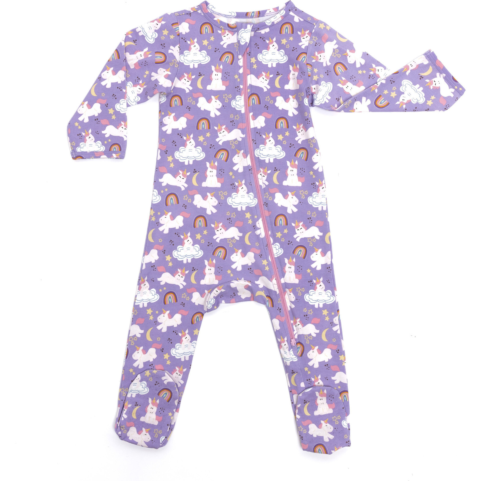 Zipped Long Sleeve Footed Onesie, Unicorns