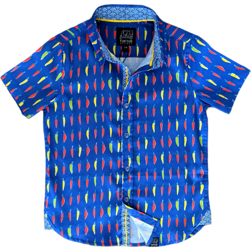 Turn the heat up with our chilli pepper print. Your little one will love this shirt from TukTuk Designs. Crafted in 100% cotton fabric, this style features contrast trim details around the collar and placket. It may be small in size, but it's big on style! Also available in matching dress, and daddy shirt.