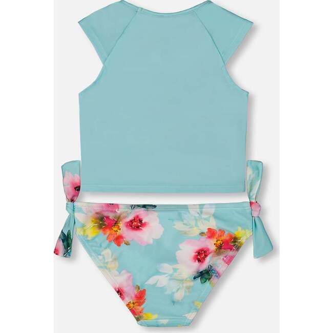 Two-Piece Swimsuit, Turquoise And Pink Flowers - Two Pieces - 3