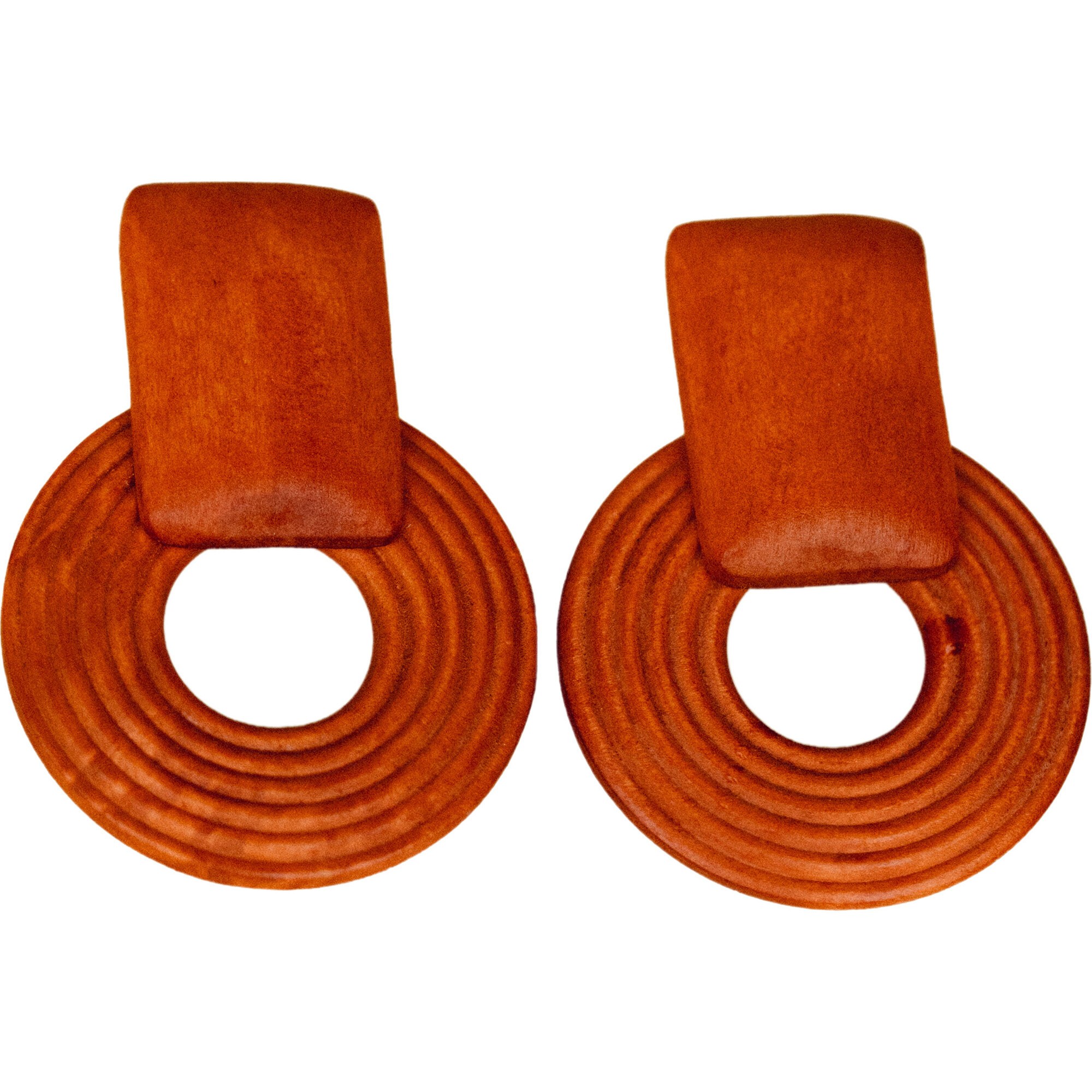 Folly, a driftwood inspired statement post earring with geometric detailing and a lightweight feel. Folly will be your casual Sunday attire's new best friend. - untreated wood geometric statement earring - stainless steel post back - 2” l, 4 mm thickness