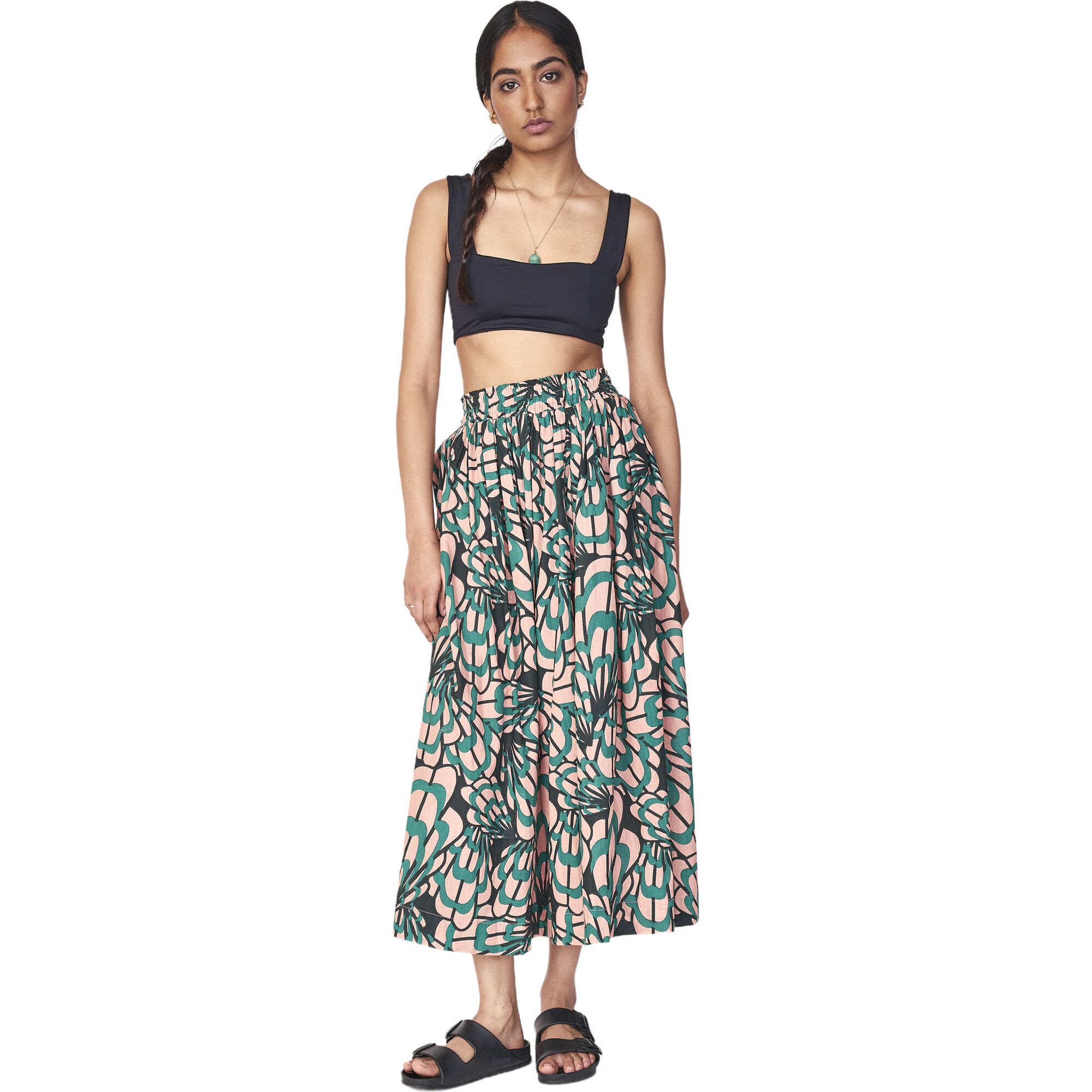 Women's Verona Elastic Waist Side Pocket Skirt, Paradise Shell. Ankle length A line skirt Wide elastic waistband Side pockets The cotton fabric is hand block printed with carved wooden blocks by 4th generation printers in India using heritage methods.